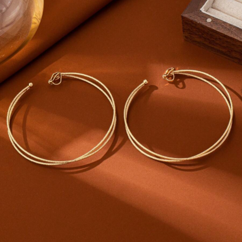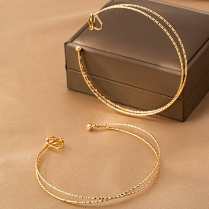 These Golden Double-Circle Clip-On Hoop Earrings add a chic, modern touch to any outfit—no piercings needed. Lightweight and comfortable, they offer a stylish layered look that’s perfect for parties, outings, or elevating your everyday wear. A trendy must-have accessory for any wardrobe.
