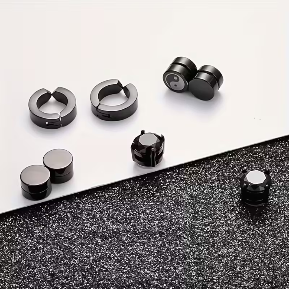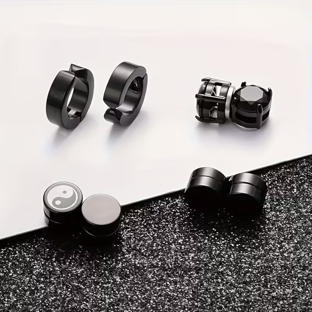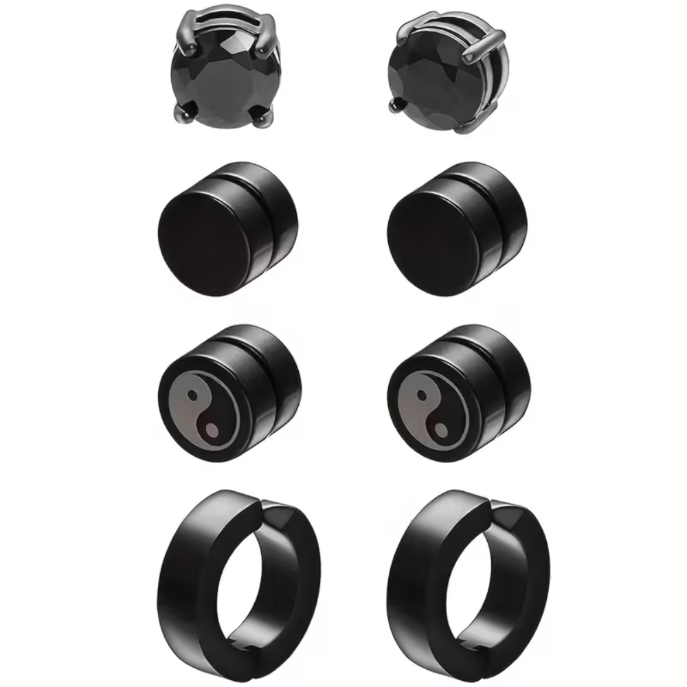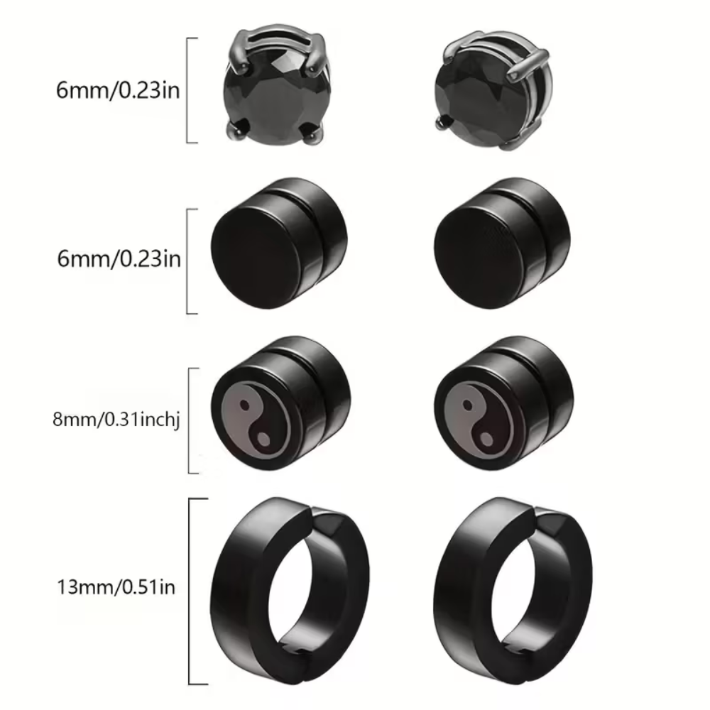 4 Pairs Magnetic Stud Earrings Black